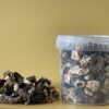 100 Gramm schonend getrocknete Herbsttrompeten. Die trichterförmige Herbsttrompete ist ein schmackhafter Speisepilz und wächst von August bis November, vorwiegend in Laubwäldern. Frisch oder getrocknet bei Köchen gefragt in Suppen, Saucen und für asiatische Gerichte.